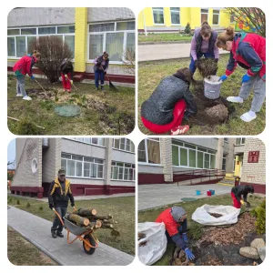 Дружной толокой: педагоги и дети вместе наводили порядок у Дворца творчества детей и молодёжи Щучина
