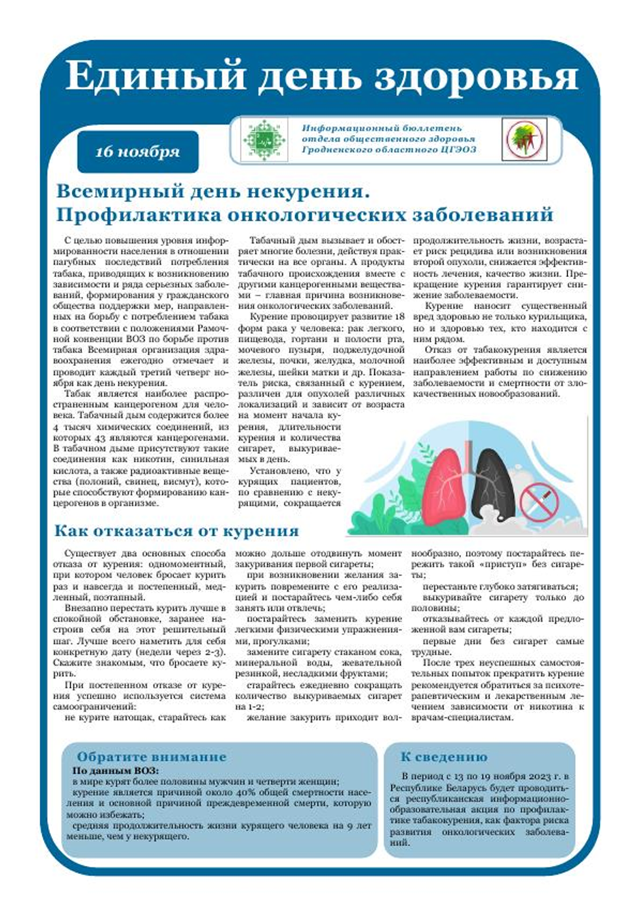 С 30 мая по 30 июня 2025 года в Республике Беларусь проводится республиканская информационно-образовательная акция «Беларусь против табака»